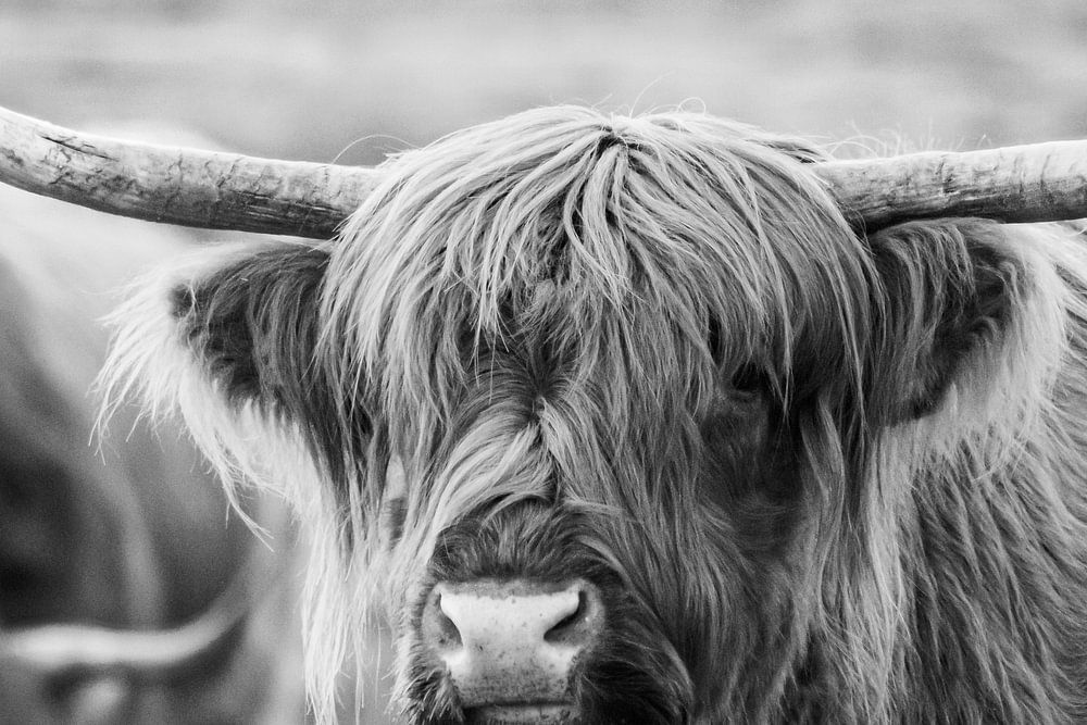 This beautiful Scottish Highlander was photographed in evening light, during the Golden Hour. Because of this the beautiful warm sunlight falls on the beautiful coat of this Highlander. Also called Highland Cow