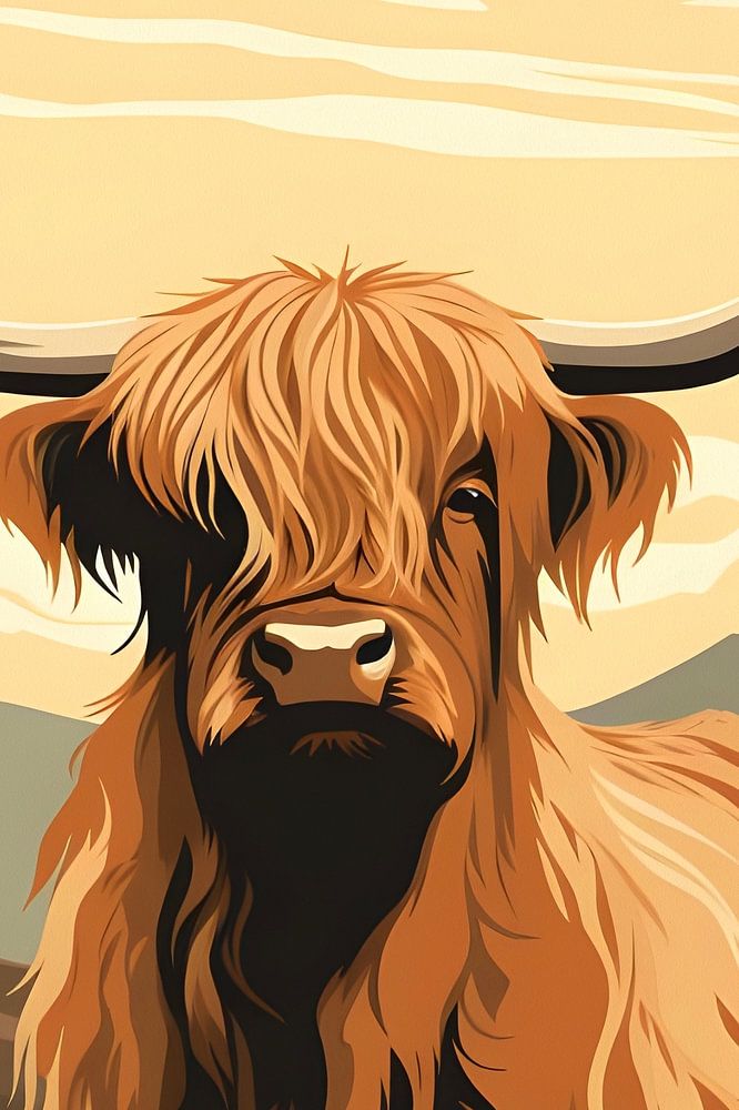Buy this cow art Scottish highlander Portrait by But First Framing on canvas, ArtFrame, poster and wallpaper, printed on demand in high quality.