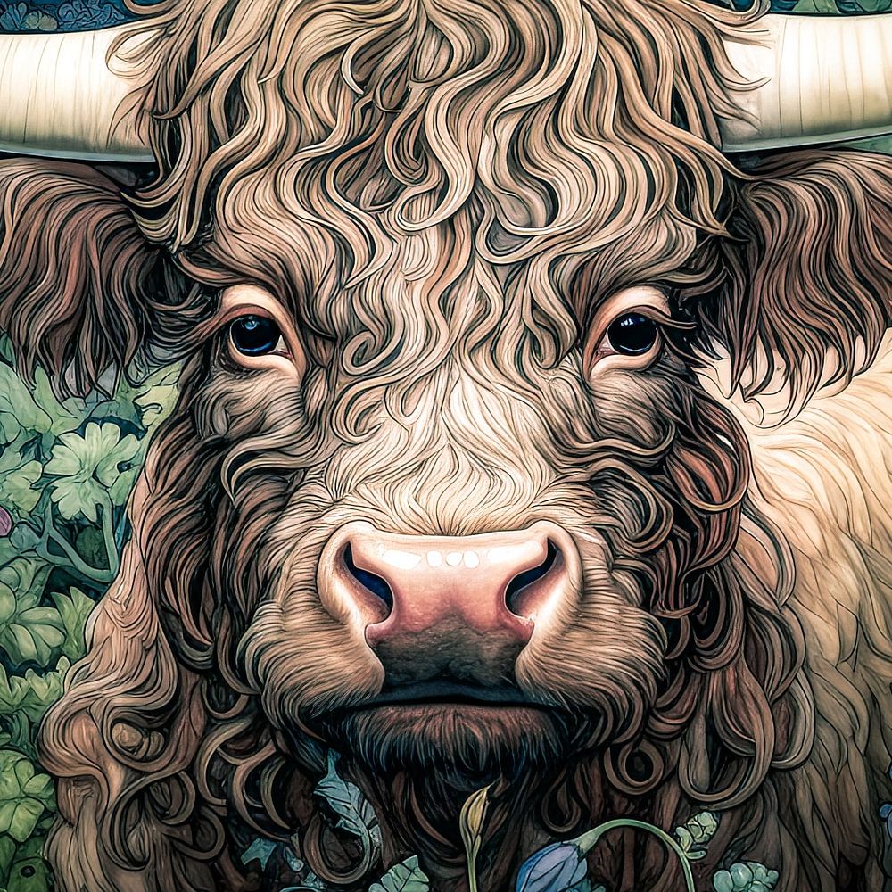 This cow art print is semi-abstract, showing simplified details of the image. The print size is square.