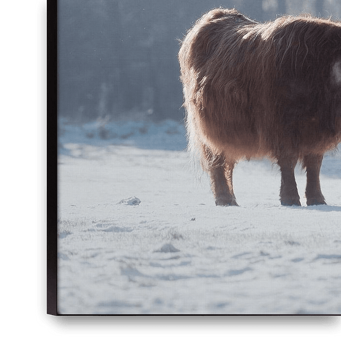 Buy this highland cow art Scottish highlander mother with calf in the snow | winter | wildlife by Laura Dijkslag on canvas, ArtFrame, poster and wallpaper, printed on demand in high quality.