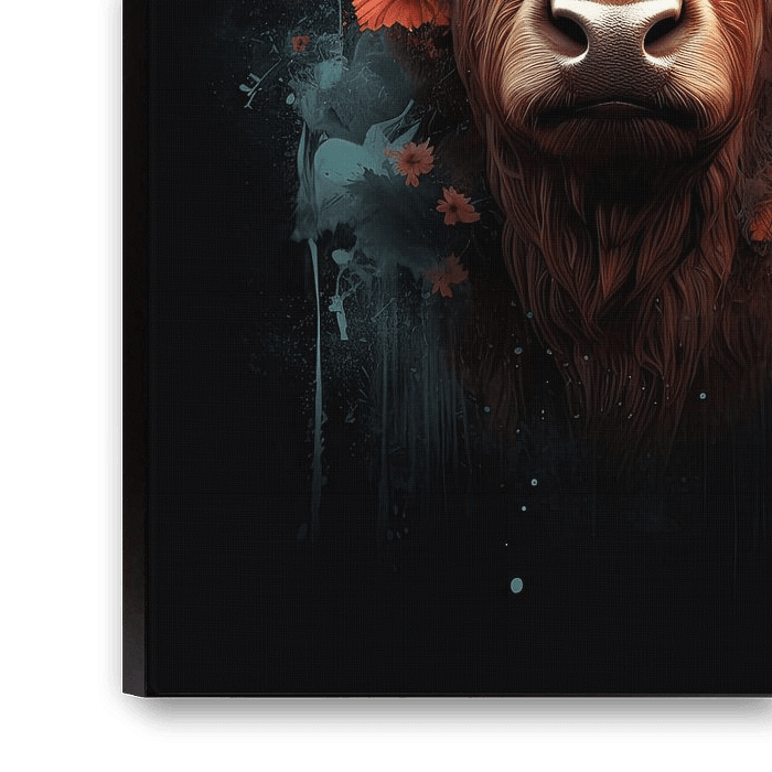 Buy this flower art Scottish highlander with flowers by Wall Wonder on canvas, ArtFrame, poster and wallpaper, printed on demand in high quality.