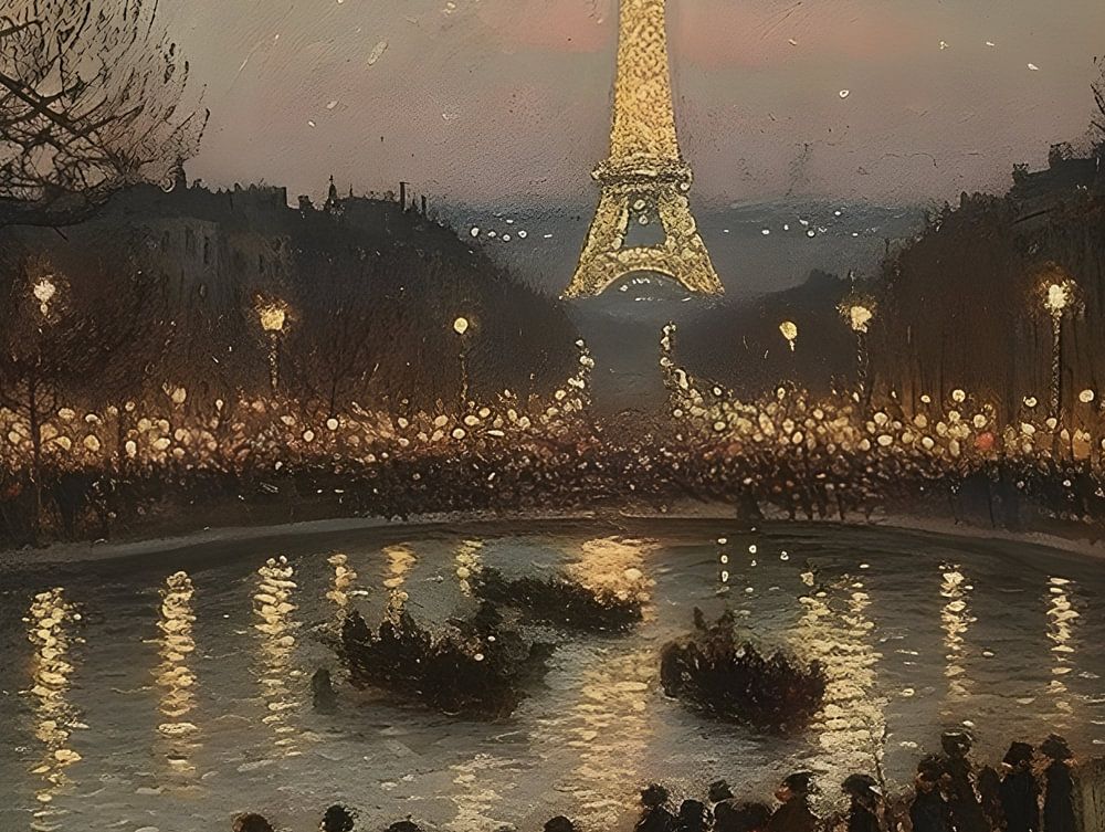 This work shows a sea of light in Paris. It is an impressionist work, inspired by the painter Camille Pissarro.