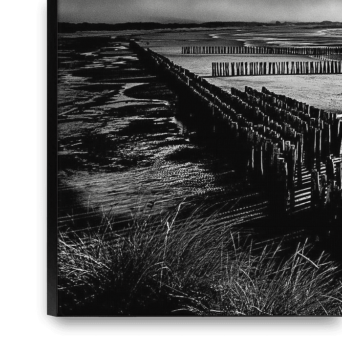 Wooden pilings on the French coast at sunset