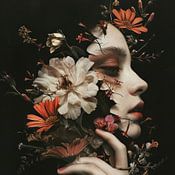 An intriguing and artistic portrait in which nature and humanity merge. Flowers seem to both form and conceal the face, evoking a sense of mystery, vulnerability and transformation. The rich, dark background and refined details lend the work a luxurious and almost timeless quality—perfect for those who appreciate elegant, emotive art…