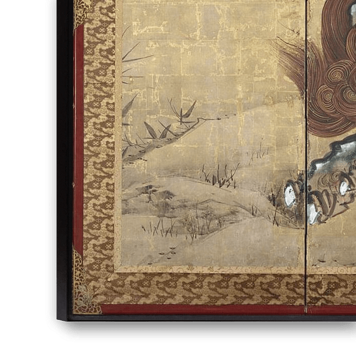 The use of gold foil as a backdrop for the frolicking animals served a practical as well as a decorative function. Because traditional Japanese rooms had no windows, interior lighting came from portable oil lamps and wax candles, whose effects were magnified by reflective surfaces.