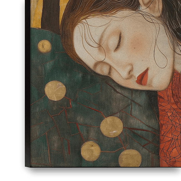 In "Selene's Dream", we see a young woman in deep tranquillity, embraced by the night. Her serene features, closed eyes and gentle smile suggest she is immersed in a world of dreams, influenced by Selene, the Greek moon goddess of sleep and dreams. The moon hanging high in the sky radiates a soft light that seems to watch over her. The…