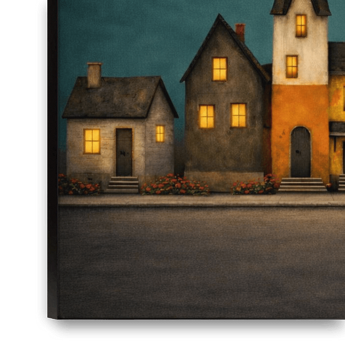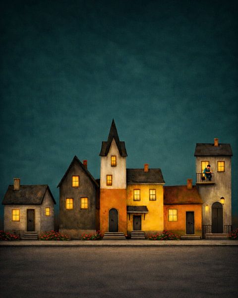 Soft window lights like golden sighs,