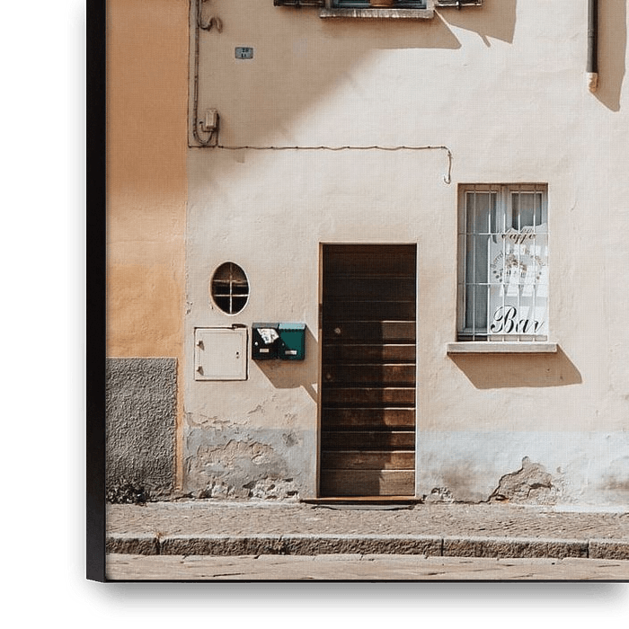 Great photo of windows that are open creating a shadow play in Piacenza, Italy. Calm colors, nice facade, great for a bedroom wall or hallway.