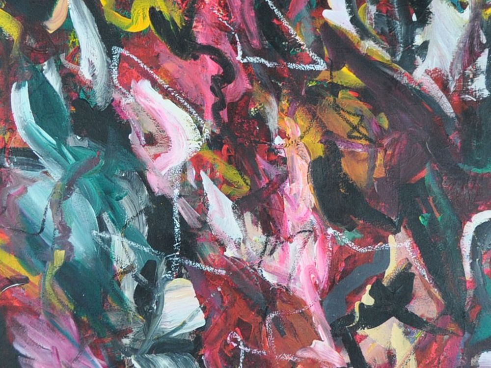 "Shake it out" is a colorful and expressive abstract painting by Lianne de Witte, created using a combination of acrylic paint and pastel. With energetic brushstrokes and palette knife techniques, this work exudes a dynamic and powerful sense of movement, reminiscent of the raw energy of street art.