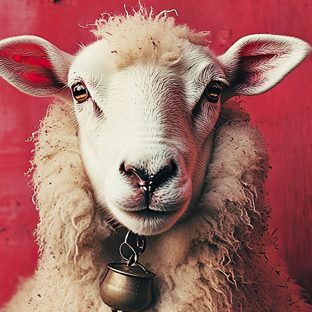 Be enchanted by the charming look of this shaap, captured in a unique work of art that exudes calm, style and a touch of whimsy. The warm pink-red of the background contrasts beautifully with the soft texture of the wool, while the subtle details - like the little bell around the neck - give this portrait a playful, almost poetic twist. This is more than a sheep; this is personality in pictures.