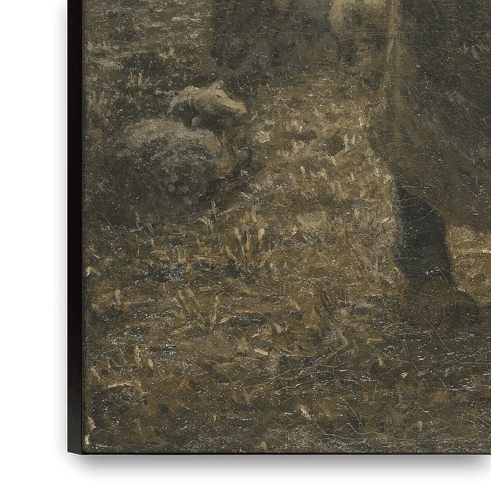 Shepherd Tending His Flock exemplifies Jean-François Millet’s dignified representations of French rural subjects. Despite their idyllic appearance today, such subjects, displayed publicly at the annual Salons of the time, carried a critique of the urban middle class’s exploitation of people and resources through industrialization.