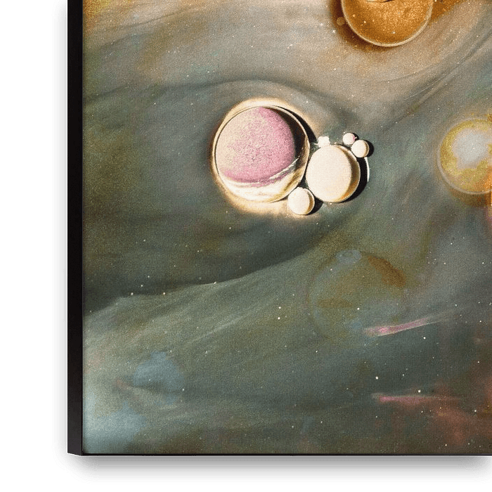 Abstract art in earth and pastel tones with bubbles and shimmering coarse oil paint texture. Fantasy mixed media