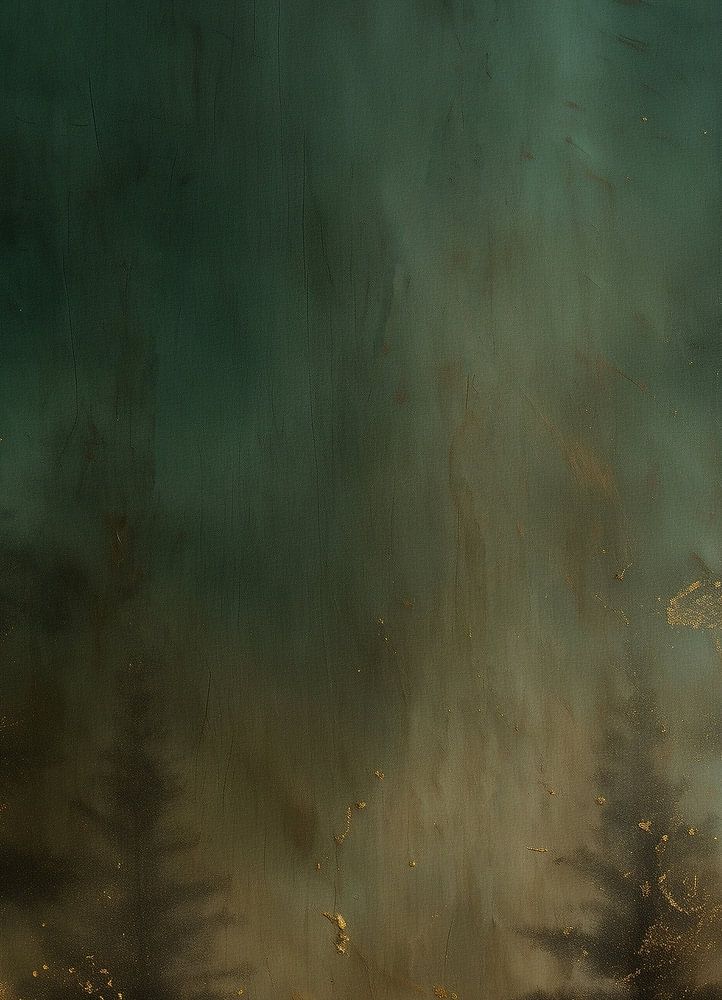 Beautiful somewhat abstract image of a pine forest. Beautiful colour scheme in gold, blue, yellow, emerald green, indigo and black. Contrasting dark and light and gold effects. Appropriate for various styles and trends, including Christmas.
