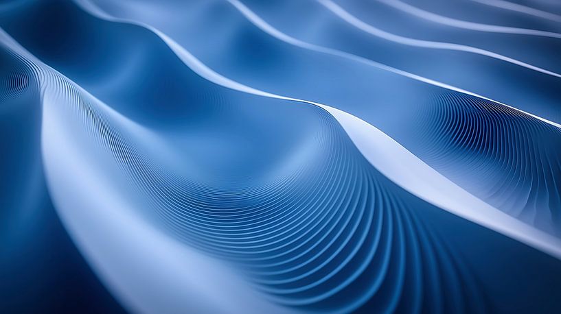 The picture shows an abstract depiction of gentle, curved waves in glossy blue. The harmonious lines and reflections lend the motif an elegant, futuristic aesthetic.