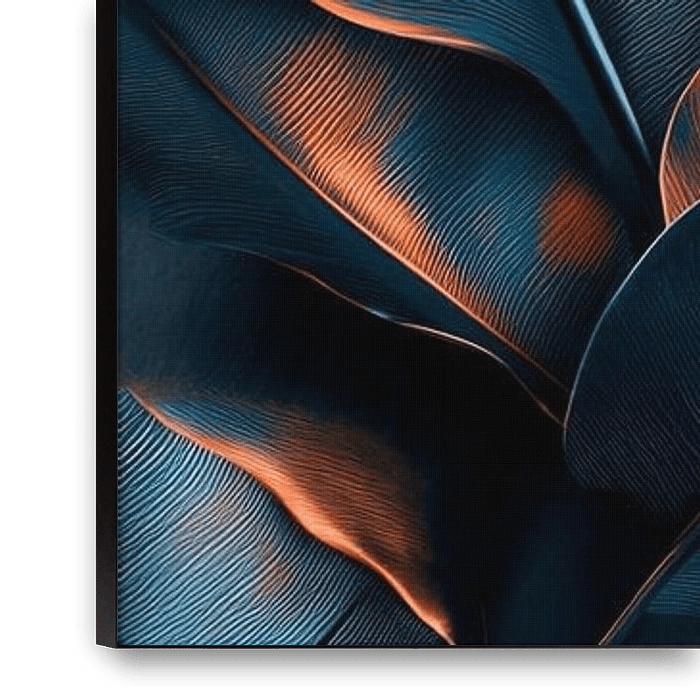 In a fascinating interplay of deep blue and warm copper tones, a harmonious composition unfolds that is reminiscent of the elegance of supple leaves. The shimmering surfaces reflect light and create a lively texture, while the curved shapes radiate a calming yet dynamic aesthetic. A real feast for the eyes!