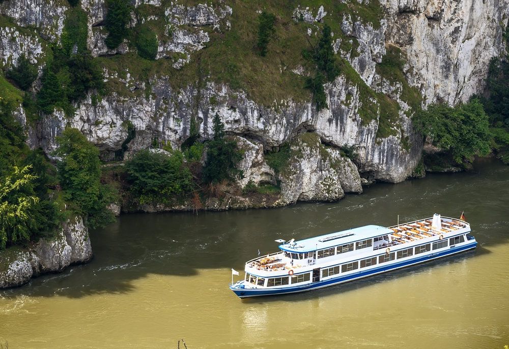 Ship sails through the Danube gorge near Kelheim by Manfred Angermayr