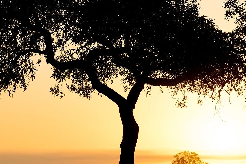 Silhouette of acacia tree at sunset on African savannah, Kruger NP, South Africa by The Book of Wandering