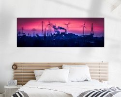 Buy this digital art artwork Silhouettes of cranes at sunset by ahafineartimages as a reproduction on canvas, ArtFrame, poster and wallpaper, printed on demand in high quality.