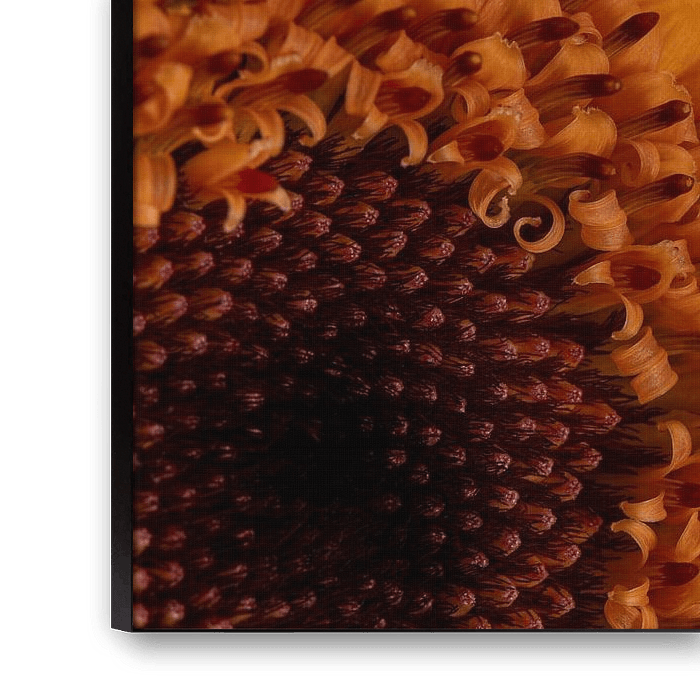 The photo: "Simplicity: Quarter of a yellow Gerbera with petrol background" is a macro photo of a simple yellow Gerbera. When taking this photo, I chose not to photograph the whole flower, but only about a quarter of the flower (it's a little more than a quarter if you look at the heart of the flower).