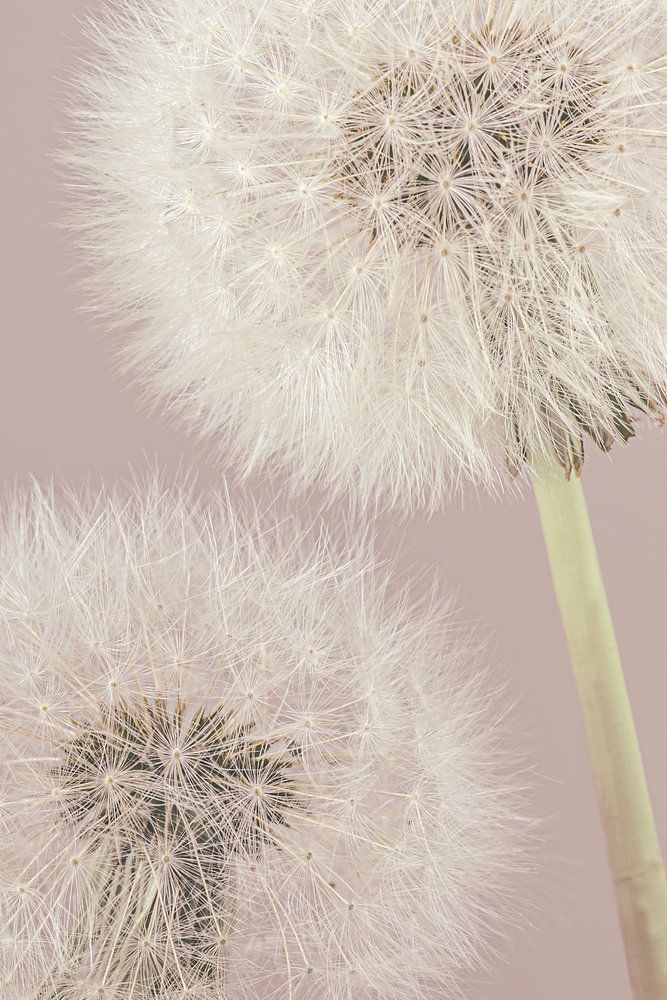 "Simplicity in a rural atmosphere with pink hue: Together until we are blown out" is a macro photo of two fluff balls of common dandelions. These two simple fluff balls are fully opened and waiting for a touch of wind, to spread in that way, the seeds attached to the fluff.