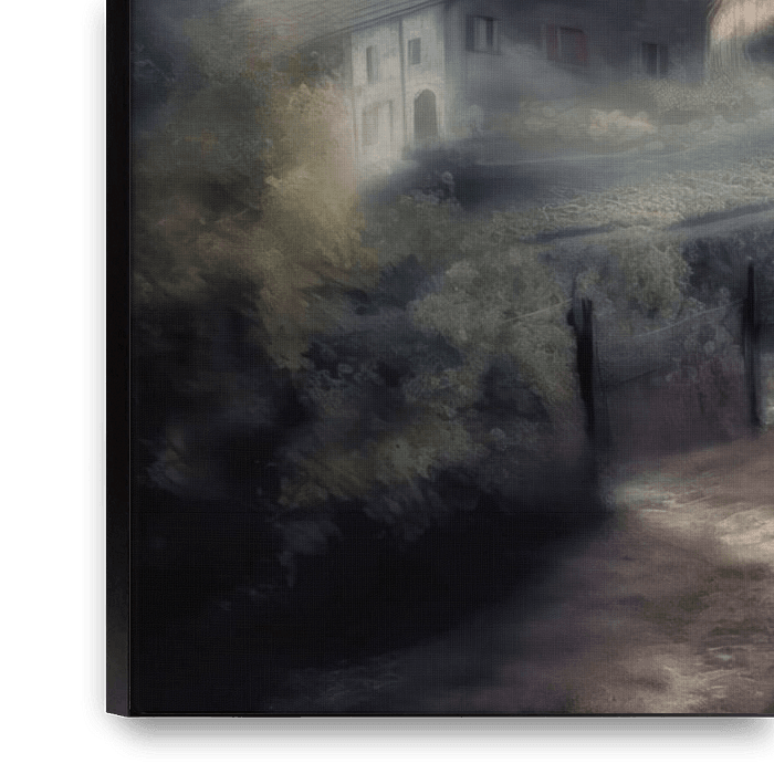 Buy this landscape artwork Sinister wanderer heading towards Village by Transmutation Art on canvas, ArtFrame, poster and wallpaper, printed on demand in high quality.
