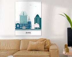 Buy this illustration Skyline illustration city of Almere in colour by Mevrouw Emmer on canvas, ArtFrame, poster and wallpaper, printed on demand in high quality.