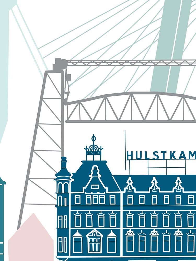 About "Skyline illustration city of Rotterdam - Noordereiland in colour"