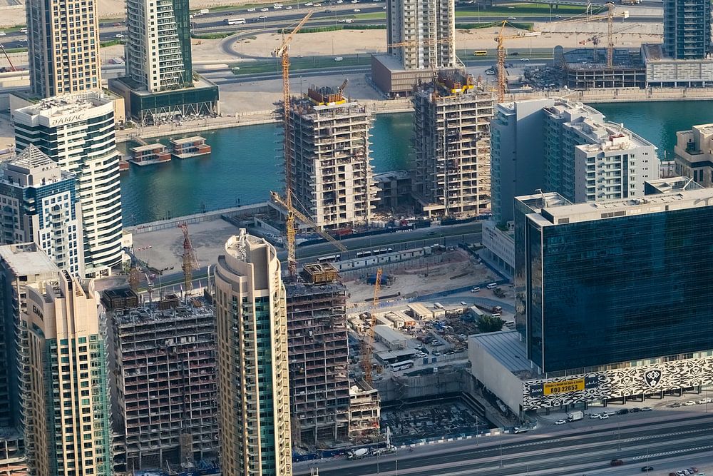 The ever growing desert city of Dubai viewed from the observation deck at the Burj Khalifa in Dubai, United Arab Emirates