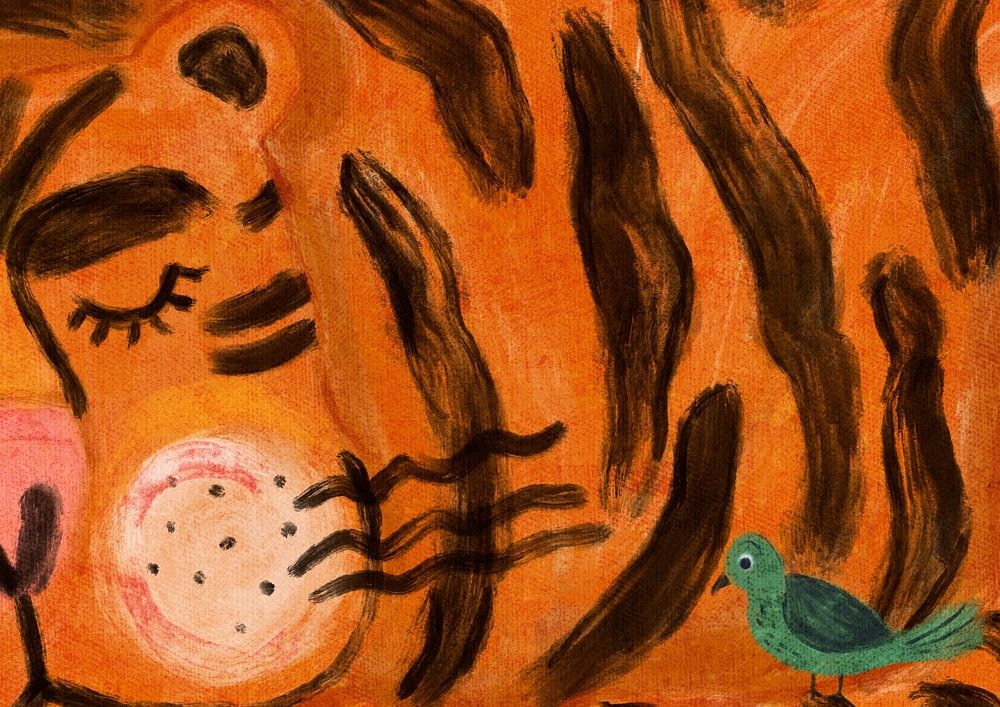 Sleeping Tiger and a Bird Animal Friends by Dirkie Nell