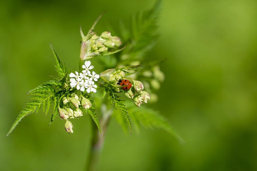 During a nature walk, I always look for the small details among flowers and bushes. It is a challenge for me to capture this as special as possible too. I saw this sweet little ladybird among the weeds along a forest path. The little red dot among all that green caught my attention and I thought this was worth a photo.
