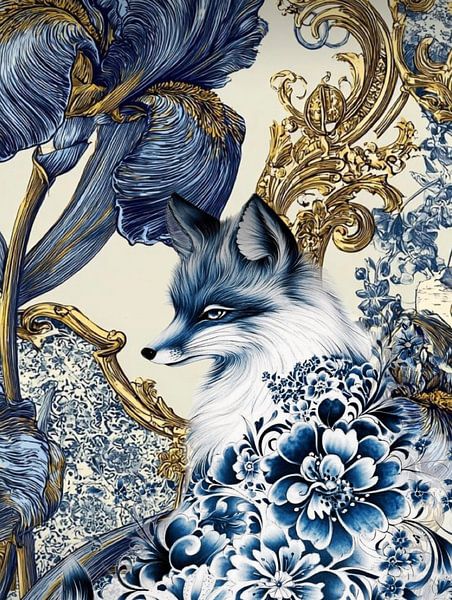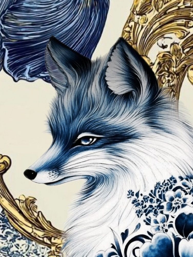 A graceful fox, captured in the iconic shades of Delftware. Traditional ceramic colours get a modern twist here.