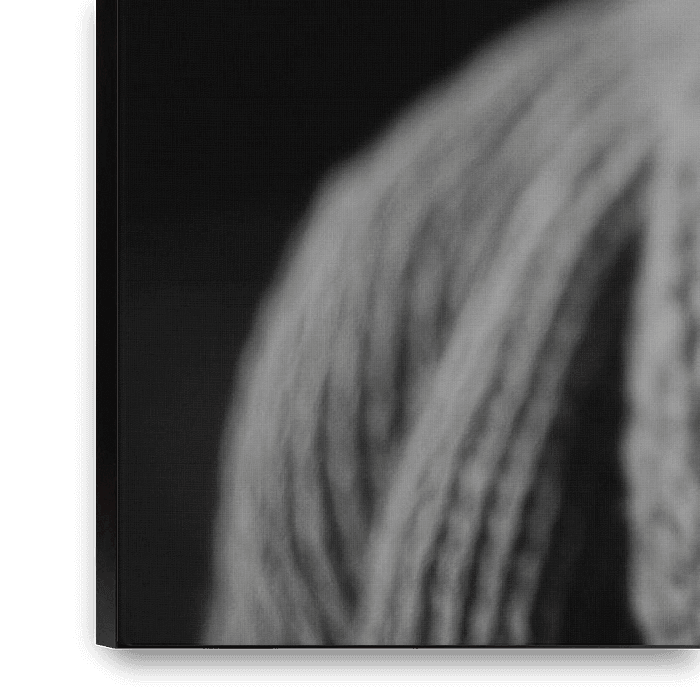 A warm-hearted smile, captured in a play of light and shadow. The wrinkles on her face tell stories full of wisdom and joie de vivre. This touching everyday scene brings cosiness into the living room and invites you to linger and reminisce - a piece of home that warms the heart.