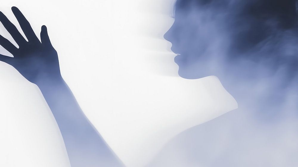 A mysterious image of a woman whose silhouette is enveloped in smoke as she holds out a hand. The image explores themes of mystery, revelation and emotional depth.
