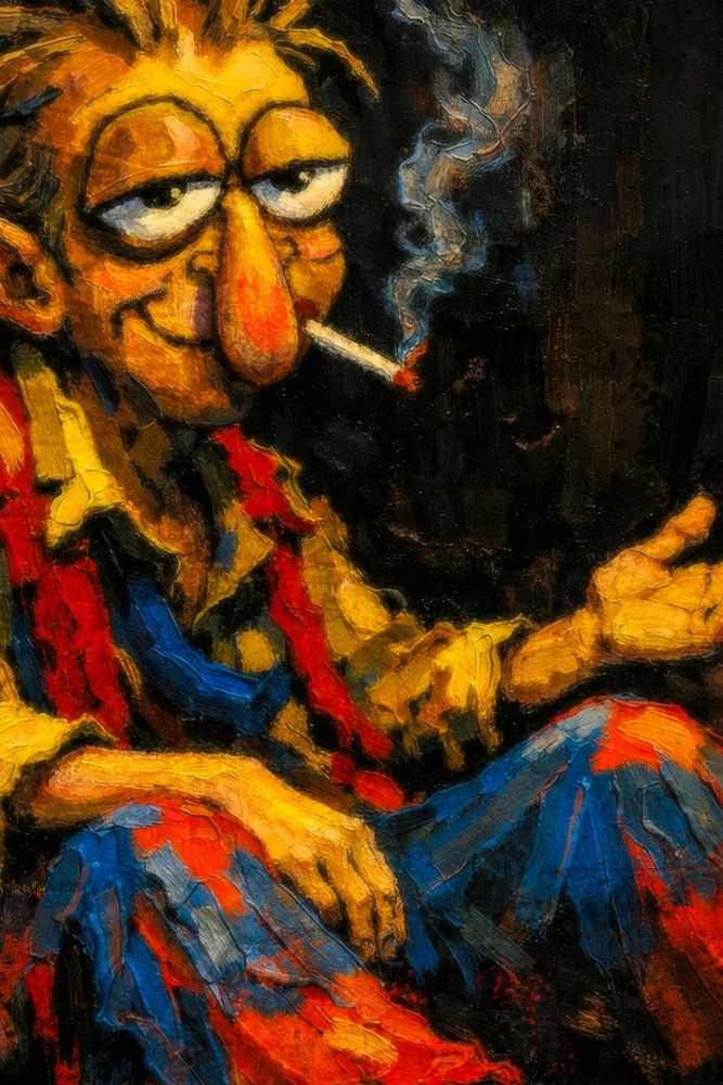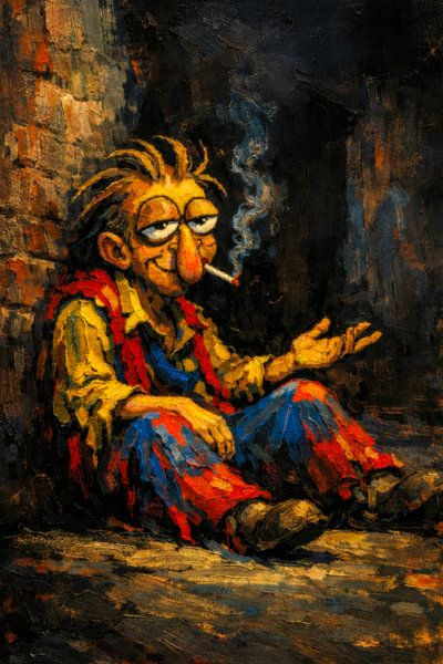 Buy this painting 'Smoking Rob' by Geert Van Baelen as a reproduction on canvas, ArtFrame, poster and wallpaper, printed on demand in high quality.
