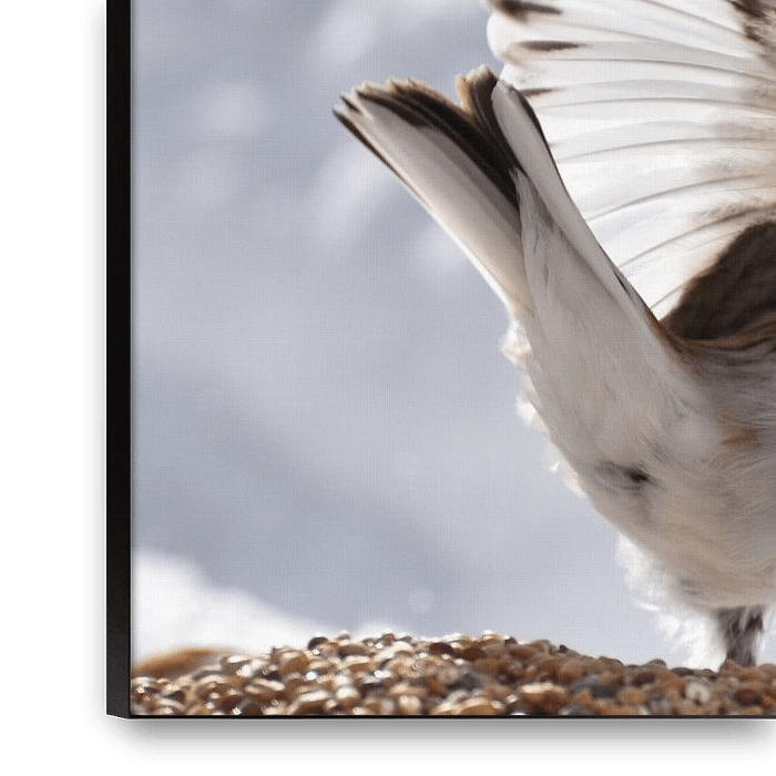 Buy this bird art Snow buntings in winter by Claude Laprise on canvas, ArtFrame, poster and wallpaper, printed on demand in high quality.