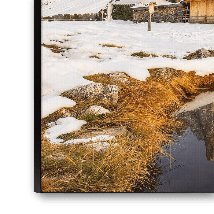 Buy this landscape artwork Snow on the Geisleralm by Daniela Beyer on canvas, ArtFrame, poster and wallpaper, printed on demand in high quality.