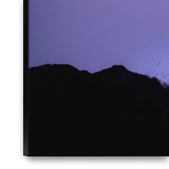 In the dark sky with shades of purple, the mountains stand out beautifully thanks…