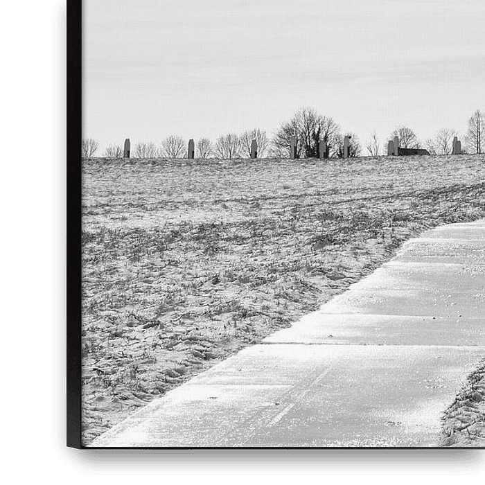 Buy this landscape artwork Snowy Schokland in black and white by Gerard de Zwaan on canvas, ArtFrame, poster and wallpaper, printed on demand in high quality.