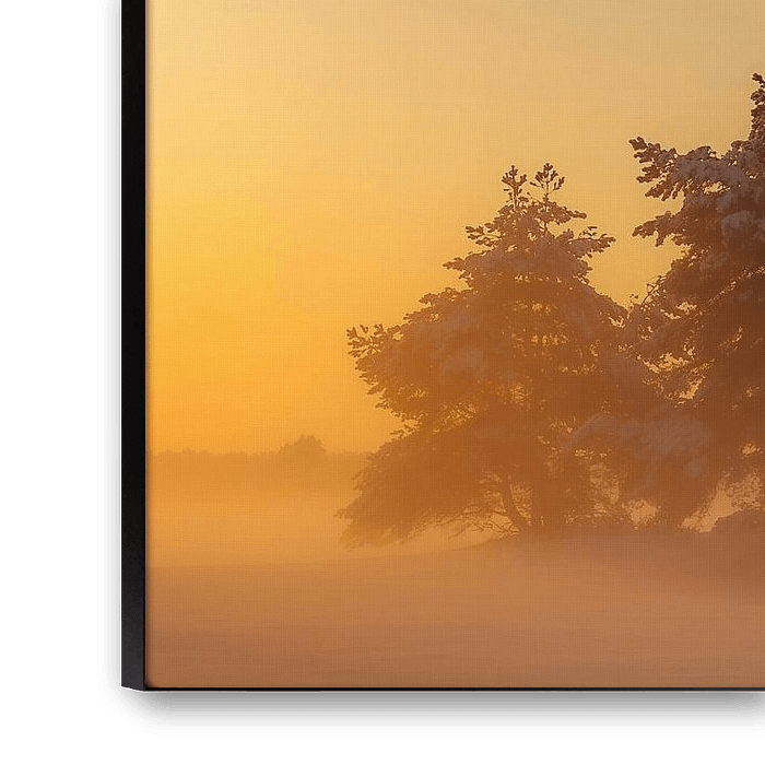 Snow winter landscape in the Hulshorsterzand drifting sand dune area in the Veluwe nature reserve in Gelderland, The Netherlands during a cold winter sunset.