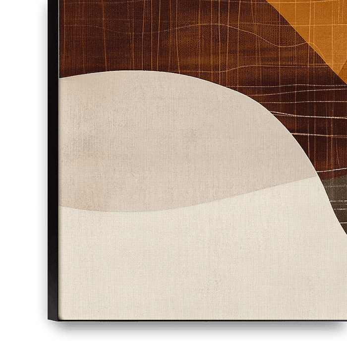 This work from the Japandi collection combines flowing shapes with a palette of warm earth tones. The overlapping layers of beige, brown and orange create a sense of depth and movement. Perfect for minimalist interiors, this work adds a touch of natural elegance to any space, such as a living room or an office, where it promotes calm…