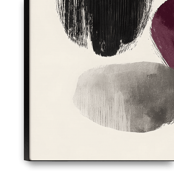 A minimalist abstract work with organic shapes in cream, grey and deep purple tones. The open composition and paint texture create a calm, sophisticated look. Perfect for a bright, stylish living or working space.