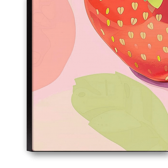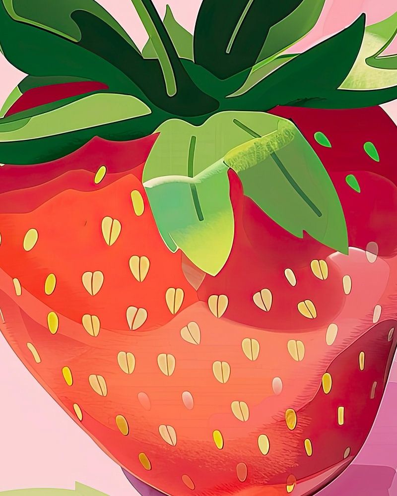 The simplicity of the illustration emphasises the strawberry's gracefulness, while the composition with soft colours creates a relaxed atmosphere.
