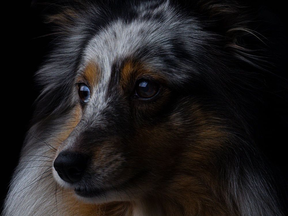 A portrait that exudes calm and connection. This Sheltie is captured in a low key setting, with only the light revealing the essence of her gaze. A powerful yet subtle image for any interior.
