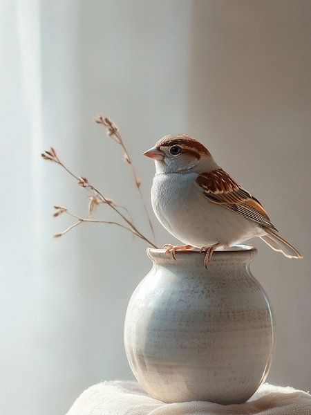 Buy this bird art Sparrow in Balance by Bianca ter Riet on canvas, ArtFrame, poster and wallpaper, printed on demand in high quality.