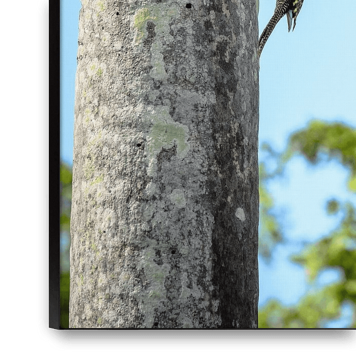 Buy this bird art Specht aan het werk by Merijn Koster on canvas, ArtFrame, poster and wallpaper, printed on demand in high quality.