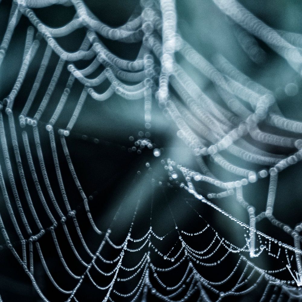 A spider's web very early in the morning, covered with dewdrops. It's like glittering beads on a necklace. A work of art by mother nature and the spider.