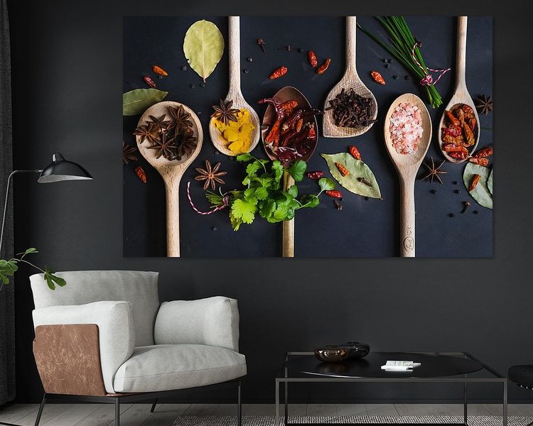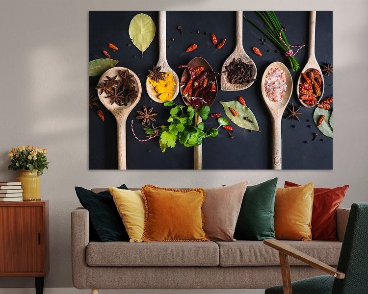 Buy the bestseller photo Spoons of herbs by Corrine Ponsen on canvas, ArtFrame, poster and wallpaper, printed on demand in high quality.