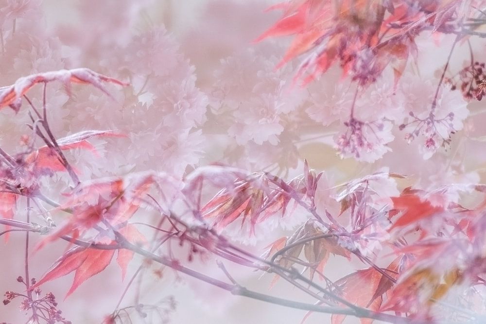 The beautiful new leaf and pink blossom make spring a party for me. This picture is made up of 2 pictures, which allowed me to put this atmosphere down.