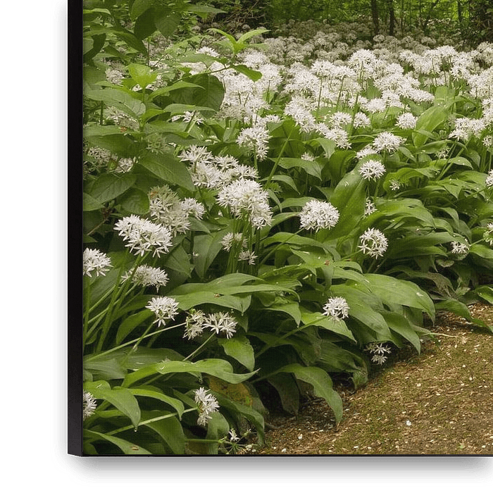 Buy this flower art Spring forest lined with a carpet of white wild garlic by Moetwil en van Dijk - Fotografie on canvas, ArtFrame, poster and wallpaper, printed on demand in high quality.