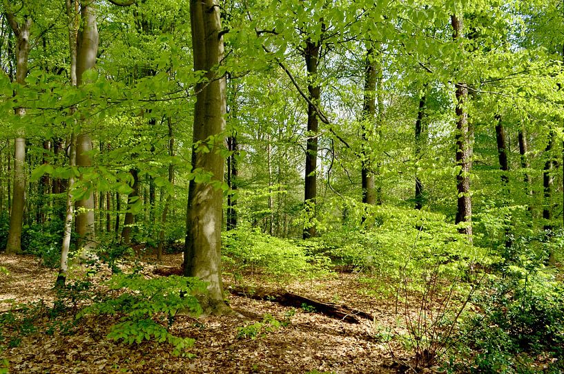 Buy this landscape artwork Spring sunshine in the beech forest by Corinne Welp on canvas, ArtFrame, poster and wallpaper, printed on demand in high quality.